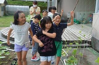ポットに植えた種が芽を出しましたので、3・4年生がプランターと三角畑に植え替えをしてくれました(*^▽^*)