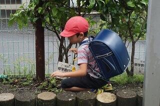 正門に入ると小さな木があります。カブトムシやクワガタのよくいるクヌギの木でもないのですが、毎日、