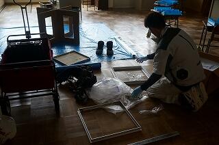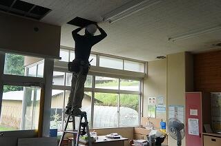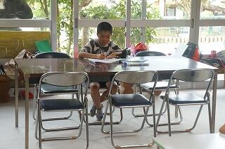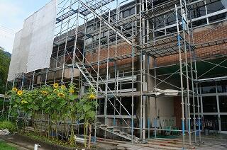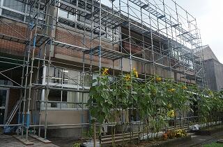 ました。窓の外では、工事の方々が外壁の工事を暑い中、一生懸命に進めてくださっています。こんな間近