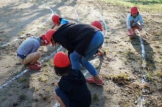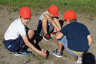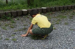 ここの草は、しっかりと根が張っていて、なかなか抜きにくいのですが、子どもたちは、自分たちが走る
