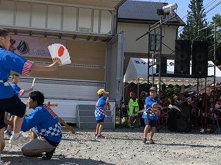 1年生なりにしっかりした応援をしています(*^▽^*)みんなで作り上げる運動会という感じで、非常にいいで