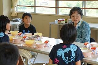 先日、わくわくランチのゲストで本校に来てくださった本地区の西川ツセ子さんが、子どもたちと楽しく