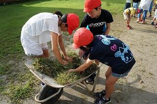レーンを何とかきれいにしたいという気持ちで、全力で草取り大会に臨んでいました。いつもながら、子ど