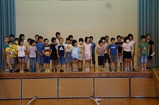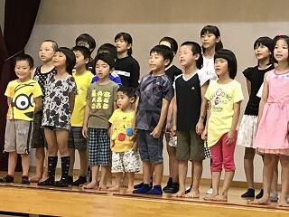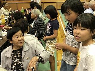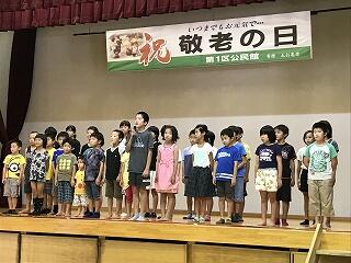 本校の児童も歌でお祝いをしました。坂本小校歌と運動会の歌です。運動会の歌については、敬老の日を