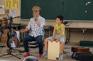 子どもたちは、シンガーソングライターの来校に超びっくり(^▽^)給食の準備の時間にかけていた歌「食