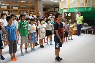 9月16日の敬老の日に、荒踊りの館において、地区の敬老会があります。本校の子どもたちも出席し、