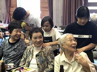 その後は、ステージから降りて、お話をしたり、肩もみをしたりしながら交流を深めました。歌の時より