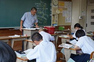 本日、五ヶ瀬中学校において、研究授業の公開がありましたので、参観させていただきました。1学年の