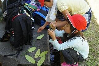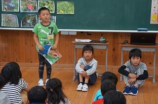 2時間目からは、各校の子どもたちが見つけてきた自然の紹介を一人ずつ行い、その後は、めあてである「うめとかきのいろいろなひみつ」を見つけに、外に出ました。