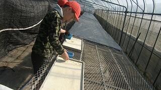 その後、種の上に土をかぶせていきました。これも均等にやらないと芽がバランス良く発芽しないということで、丁寧に作業をしていきました。