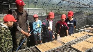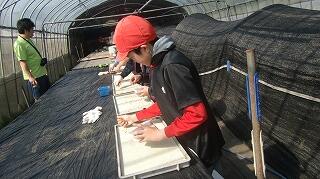 毎年、本校の保護者である長田しんじさんにお世話になっています。今年もしんじさんのハウスで種まきをさせていただきました。