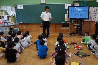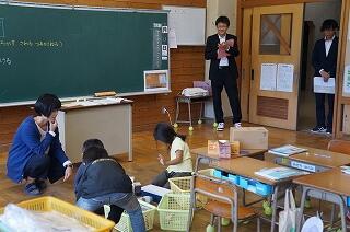 今日は、1年生にとって、初めてのG授業の日。鞍岡小、上組小、三ヶ所小、坂本小の4つの学校の1年生が三ヶ所小に集まって、授業を行います。