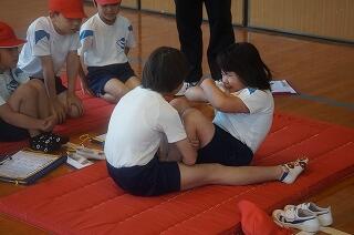 その後、グループごとに、それぞれの種目の場所に移動し、テストを行いました。