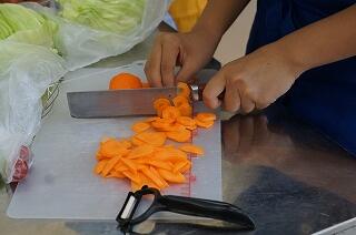 普段から家の方でも手伝いをやっているのか、手際よく、にんじんやブロッコリーを切っていました。