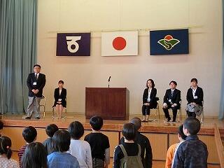 5名の先生方にあいさつをしていただき、6年生児童が楽しく、歓迎の言葉で迎えてくれました。