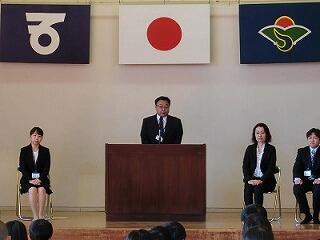新任式の後は、始業式でした。校長先生から「笑顔で登校、満足の下校」ができる学校をみんなで創っていこうという話がありました。始業式後は、生徒指導主事から「命」など大切な話がありました。みんな真剣な表情で聞いていました。