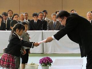 各学年の代表児童が修了証を受け取り、それぞれの学年の課程を修了することができました。どの学年も返事や態度が素晴らしく、この一年の成長をしっかり感じることができました。