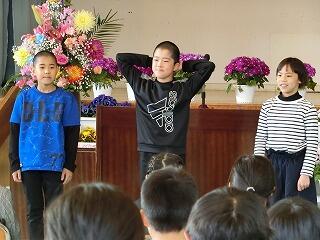 意見発表では、1年間の頑張りについて1年生と5年生の発表がありました。できなかったことが努力してできるようになったことや次年度に向けての力強い抱負を聞くことができました。