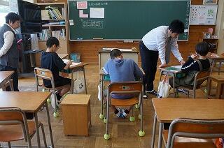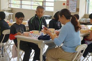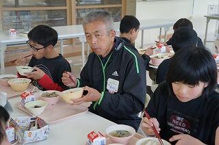 今回は、五ヶ瀬町の議員さん(甲斐様)ご夫妻でした。お孫さんが本校に在籍していますので、お孫さんのいるグループで食べていただきました。