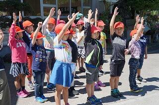 遠足の最後に、お別れ式を行いました。實行さんには、感謝、感謝です。心配された地震もその後は、起こらず、無事に帰校することができました。實行さん、ありがとうございました<(_ _)>