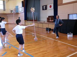 五ヶ瀬の荒踊りは、古くから坂本地区に伝承されているもので、例大祭など、様々な機会で踊られています。坂本小の児童も毎年、地区の先生方に教えていただきながら、伝統芸能の荒踊りを学んでいます。本年度も早速、練習が始まりました。(先月26日が初日)