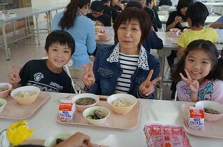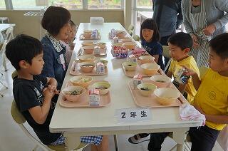 わくわくするようなランチって何でしょうね?それは、メニューではありません。本校では、地区の方々をゲストとして給食に招待し、子どもたちと一緒にお話をしながら、ランチタイムを楽しんでもらっています。