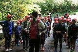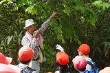 今回の遠足は、ネイチャー先生の山中實行さんにガイドをしていただきながら、自然を散策し、様々な草花の説明を聞いたり、宝探しや草花を使った遊びなどをしたりする計画でした。はじめに、實行さんの説明を聞いて、出発しました。