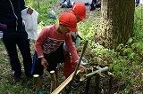 宝探しの場所では、隠された札をみんなで探しました。この札も竹製で、これがもうすでに宝だよなあって感じました。