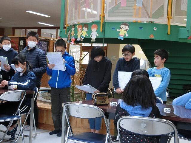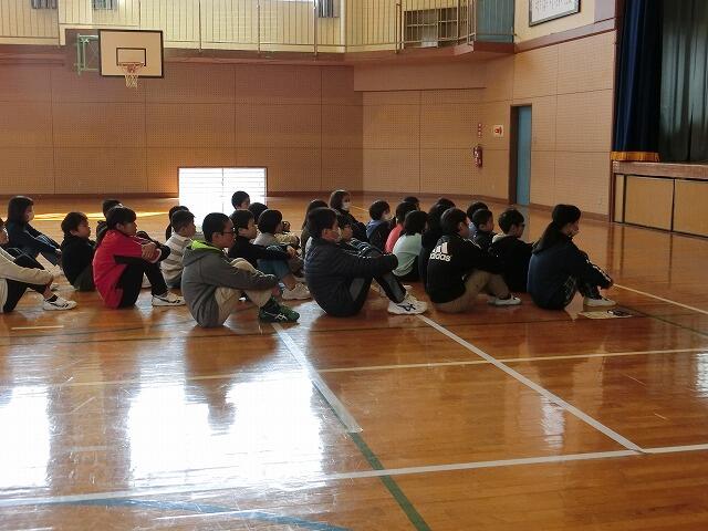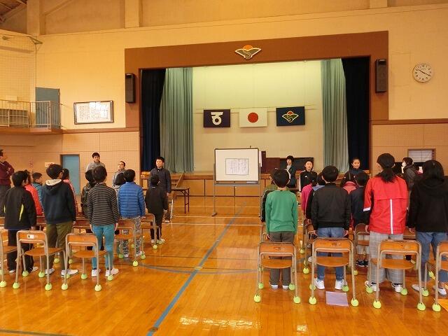 今日は全校児童が集まり、卒業式の歌と呼びかけの練習を行いました。