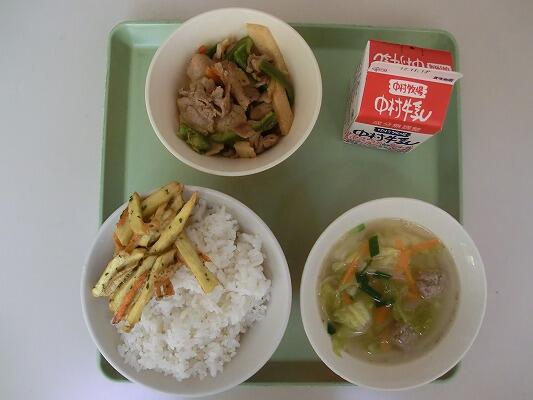 でした。みんな、美味しくいただきました。特に、白身魚フライのサクサク感がたまらない様子でした。ふわふわスープの卵も美味しかったです。