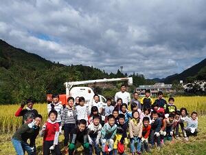 「まだやりたい!」という声が上がったため、今年はもち米の田んぼまで子どもたちの手で収穫しました。