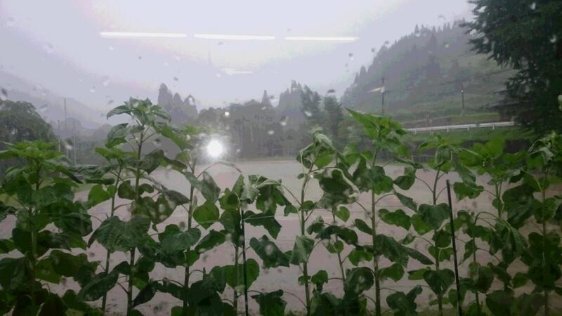 台風が接近し、雨や風が強くなりました。今日の荒踊継承教室も残念ながら中止になりました。3・4年生の花育活動で花壇に植えたヒマワリが倒れてしまっては大変なので、昨日、支柱を立てて、バインダーで茎をつなぎました。おかげで風雨が強まっても、1本も倒れることはありませんでした。これから夏本番です。花が咲くのがとても楽しみです。