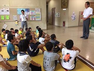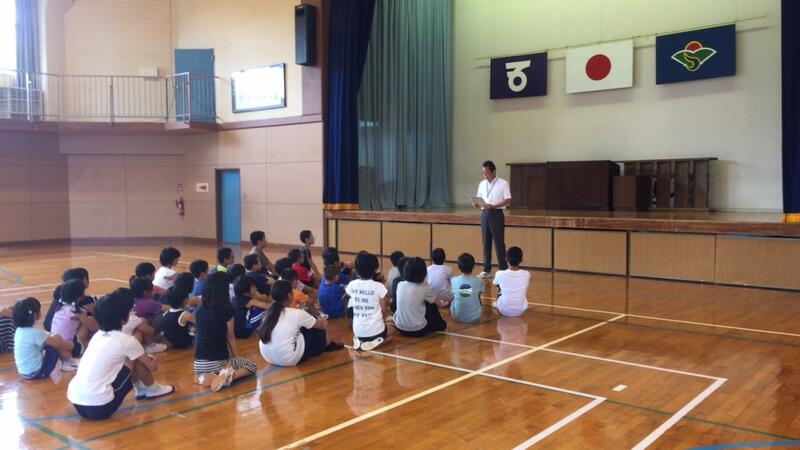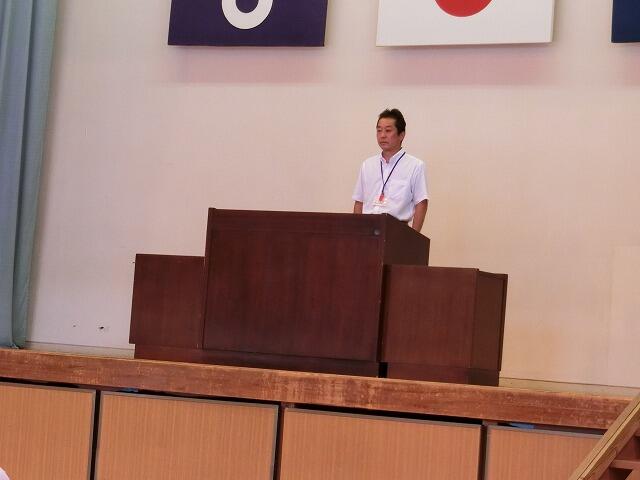 「あ・し・た」の文字のとおり、1学期、明るく、真剣に、たくましく学校生活が送れるように、よりよい「明日」を目指してこれからも前向きに取り組んでほしいというお話でした。校長先生からの宿題は、夏休み、何かがんばったと言えることをすること、2学期始業式に全員、笑顔で元気に登校してくることです。