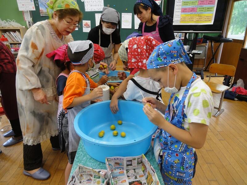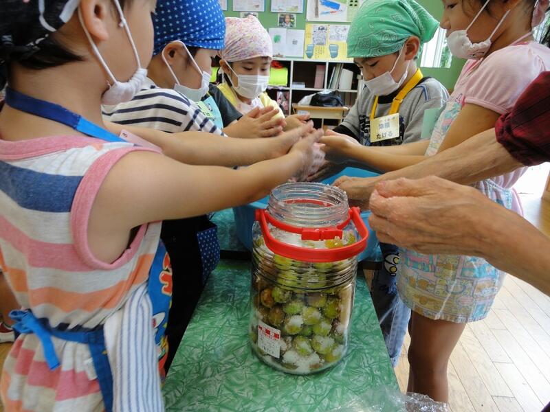 地域の方を「梅博士」として招いて、梅ジュースや梅干しを作りました。初めて経験することも多く、いろいろな気づきがあった子どもたちです。