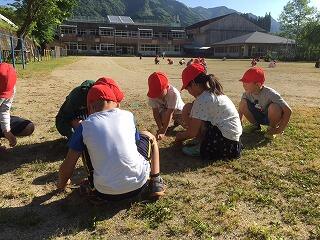 先日の代表委員会の話合いでもっと朝のボランティアをがんばるために、草取り競争をすることが決まりました。環境福祉委員会が中心になり、水曜日は、たてわり班で草取り競争をすることになりました。今日も、運動場をきれいにしようと、より一層はりきって草取りをがんばっている子どもたちです。