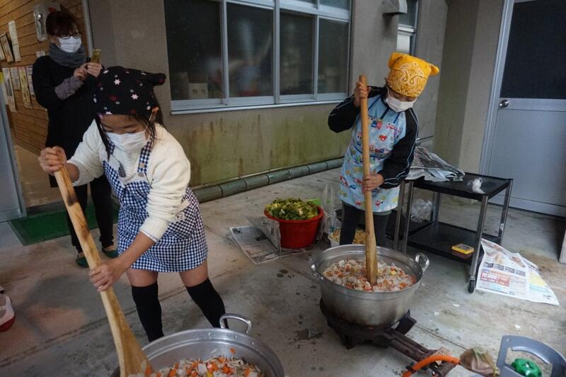 自分たちが生産に携わった食材を使って作った料理をお世話になっている地域の方々に振る舞う「坂小収穫祭」を行いました。早朝から保護者の皆様や婦人会の皆様方の協力をいただき,振る舞いの準備にかかりました。具材の準備,もちつき,そしてふれあい教室は「グラウンドゴルフ」を予定していましたが、雨天のため「昔の遊び」に変更して行いました。その後,感謝を込めた会食を行い,最後に各学年ごとに体験活動の報告と音楽発表をご覧いただきました。ご協力いただきました皆様方に心から感謝を申し上げます。ありがとうございました。