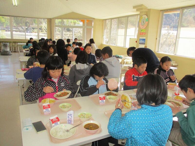 今日の給食はカレーでした。みんなで協力して、素早く給食の準備を行い、全員が時間内に食べ終わることができました。