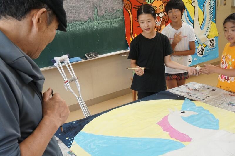 運動会を盛り上げる取組として、5・6年生がそれぞれの団の看板づくりを行いました。今日は、地域の方から構図や色あいについてアドバイスをいただきました。どんな看板が出来上がるのか楽しみです。