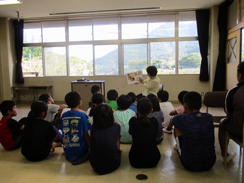 2学期になって初めての「つくしんぼの会」の方の読み聞かせが朝の時間にありました。