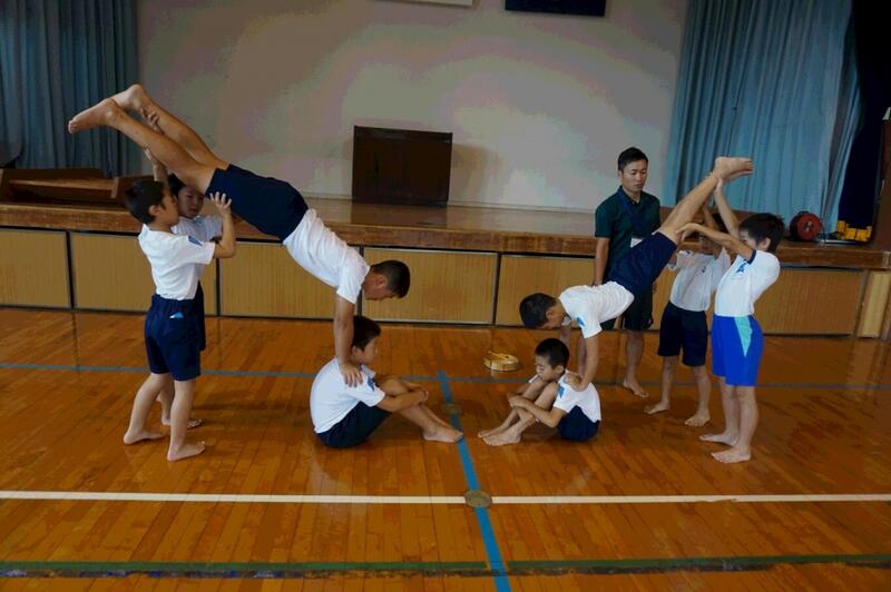 組体操を通して仲間を信じる心、仲間を支える心を高めましょうとオリエンテーションを行ってから3回目の授業。今日は、組体操の8人技「小さな橋」にチャレンジしました。普段は支えられている側の子どもたちを支えてもらう側の子どもが支えています。練習では何回も成功しました。本番が楽しみです。