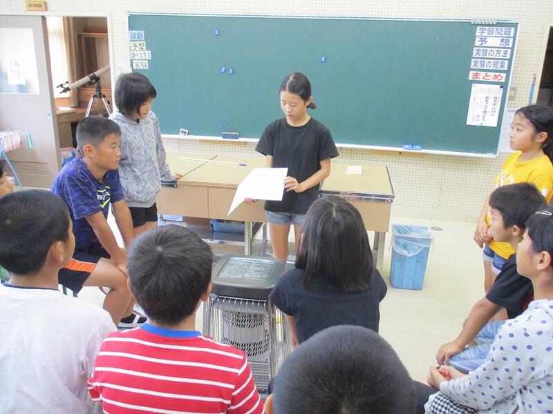 理科の時間に5・6年生合同で夏休みの自由研究の発表を行いました。