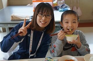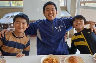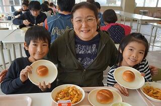 一人は、本校の2年生の保護者になります。子どもは大喜びで、とてもいい笑顔を見せてくれました。他のお二人は、久しぶりの給食ということで楽しみにしておられたようですが、期待通りの給食だったようで、とても喜んでいただけました。子どもたちとの会話もはずみました(*^▽^*)