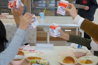 この後、恒例の牛乳乾杯をして、二人のお祝いをしました。