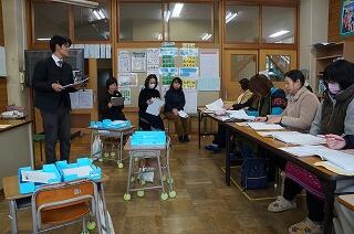 学校からは、学習面や保健面、生活面、納入金関係、いきいき教室など、それぞれの立場から10分程度ずつ説明をしました。保護者の皆さんは、熱心にその話しを聞いていました。今から入学式までに準備していただく物や練習しておいてもらうことなどがお分かりいただけたことと思います。どうぞよろしくお願いします<(_ _)>