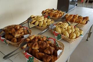 パン(クロワッサン、メロンパン、バターロール)にクリスマスケーキ、そして、写真にはありませんが、スープにケチャップライス、牛乳でした(*^▽^*)どうです?すごいでしょ?