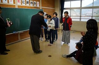 五ヶ瀬の冬は、寒い。坂本は氷の坂本と異名をとるほど冷たい。ということで、本日の終業式は、体育館ではなく、ストーブをつけて、視聴覚室で行いました。非常に快適な環境の中での式は、子どもたちの集中力も高く、とてもスムーズに進められていきました。