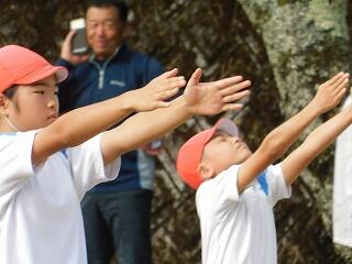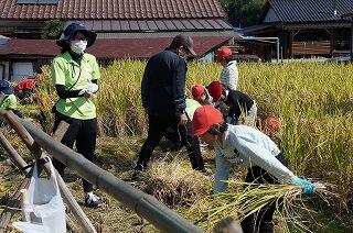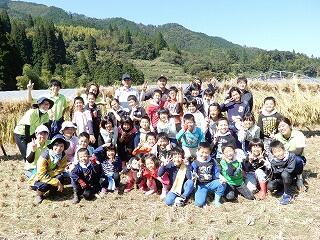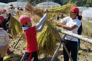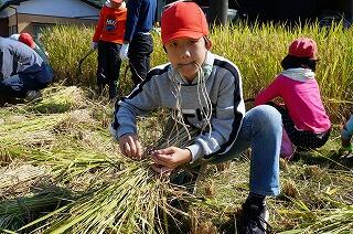 毎年行っているので、子どもたちのカマ使いはとても手際が良く、稲をスムーズに刈り取っていました(^▽^)ただ、稲の束をまとめて縛る作業は、四苦八苦していました(>_<。)