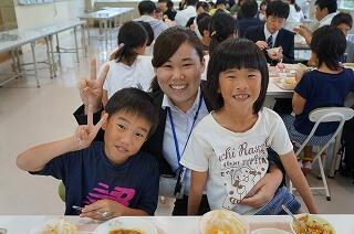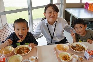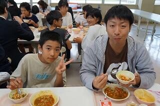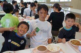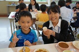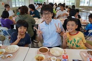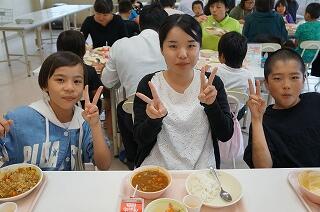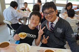 わくわくランチの2組目は、宮崎大学の先生と学生さんたちです。4時間目の特色ある教育活動の時間から来てくださいました。子どもたちが荒踊りを一生懸命、真剣に踊っている姿に感激されたようです。ランチの時間も会話が盛り上がっていました。