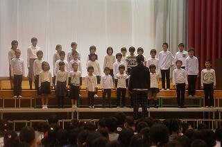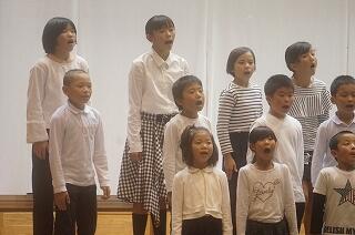 本校も2曲、合唱を披露しました。1年生から6年生までの全員での合唱ですので、合わせるのがとても難しく、何度も何度も練習を重ねてきました。合唱部や同学年での歌と違って技術的な部分では、まだまだだったかもしれません。ですが、みんなが心を一つにして、声を指揮者に集めるように歌った歌声は、魂のこもった、すばらしい歌声だったと思います。