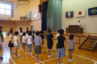 式終了後は、生徒指導、学習関係、保健関係の話をそれぞれ担当の先生方にしてもらいました。きちんと話を聞いている姿に、夏休み気分は、しっかり抜けていくだろうと確信しました。2学期の子どもたちの頑張りに期待してください<(_ _)>